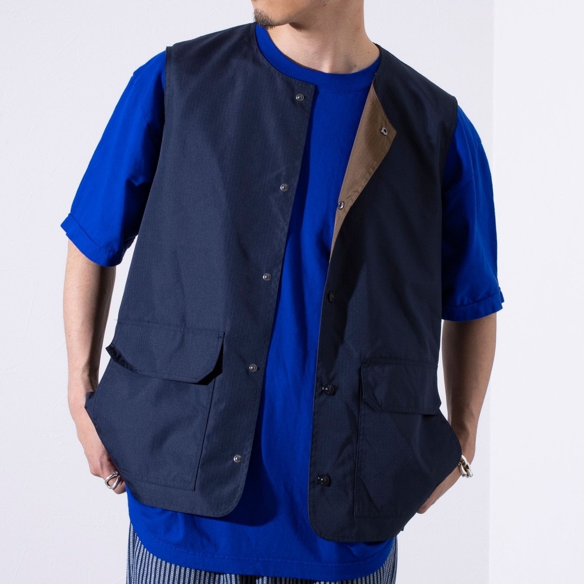 ノンダウンミリタリーシリーズより春から夏まで使えるクルーネックのリバーシブルベストが登場!