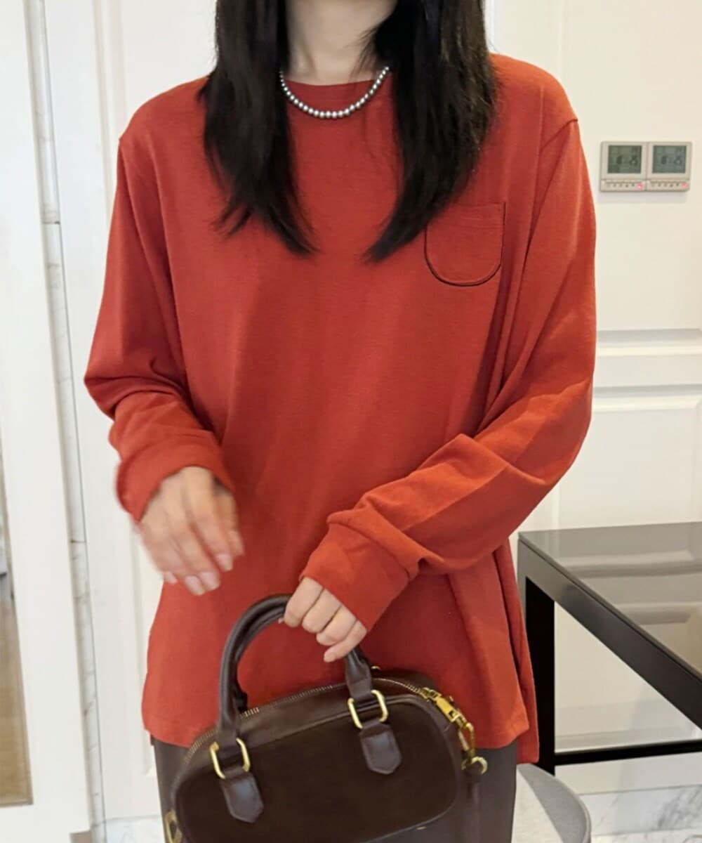 シンプルでありながら胸元にポケットが施されたデザインが特徴のロングスリーブTシャツ。ポケットのデザインがアクセントとなり、シンプルさの中にも少し遊び心を加えたアイテムです。ゆったりとしたシルエットで快適。