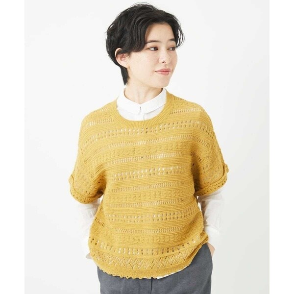 ゆったりとしたシルエットとほどよい透け感に編んだデザインがポイントです。