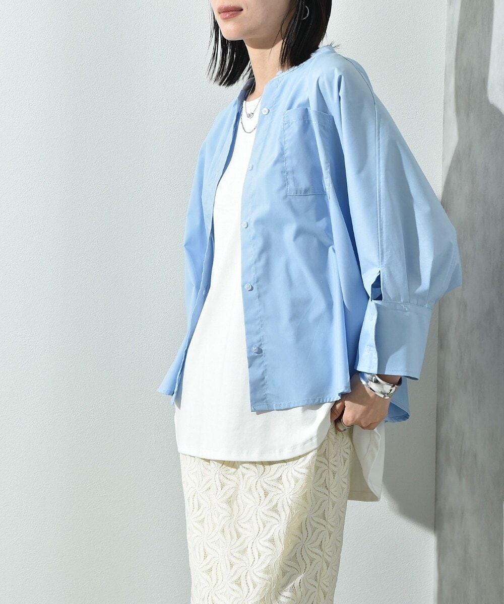 着こむほど風合いが良くなじむ柔らかいコットン混素材で仕立てたシャツ。程よいビックシルエットとバンドカラーが今っぽさを与えてくれる1枚で、アクセントにしたダブルカフスがポイントです。ベーシックなデザインながらこなれ感がグッと上がる1枚です。