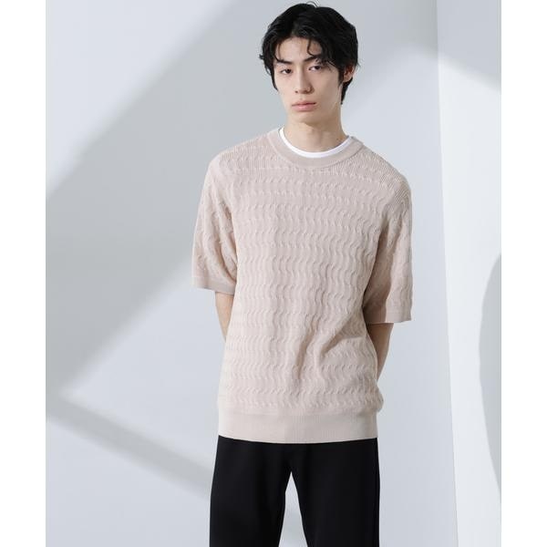 ざっくりと編み立てたやや透け感のあるケーブル模様のクルーネックニット。ニットながら、軽やかな装いを演出する今春夏おすすめの1着です。