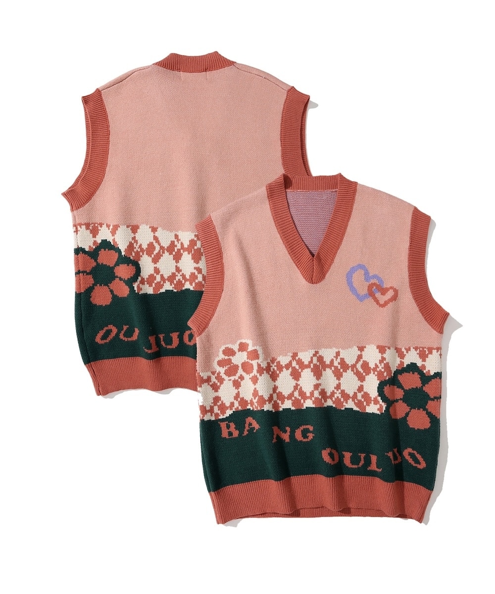 ブルジャガードで編立て、レトロでPOPな古着感のあるグランジ風ニットベスト。<br>