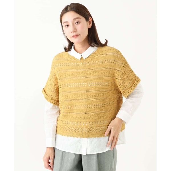 コットン100%の清涼感のある肌触りのかぎ編みニットプルオーバー