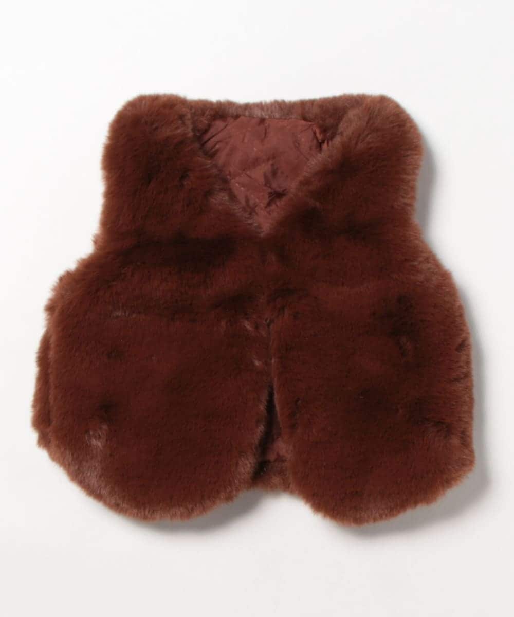 おしゃれで可愛いキッズのフェイクファーベストです。トレンドに敏感なオシャレさんにおすすめ♪通園通学はもちろん、公園遊びやアウトドアシーンにも!