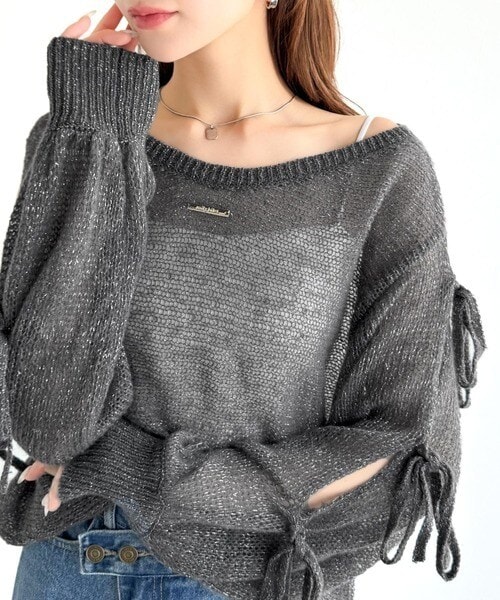 ファー ニット素材 / ポリエステル素材 / 無地 / ロゴ / ワンポイント / リボン / 透かし編み / 長袖 / LL・13号以上あり / S・7号以下あり / 大きいサイズあり / 洗える / ワンショルダー / カジュアル / レギュラー丈(トップス)
