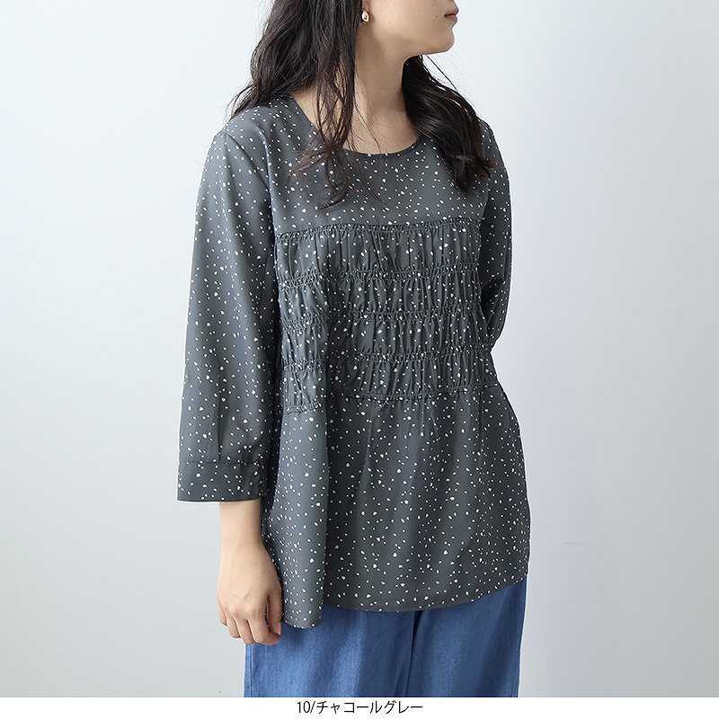 21番 新品 3L 袖シャーリング 七分袖 シャツ ブラウス 大きいサイズ