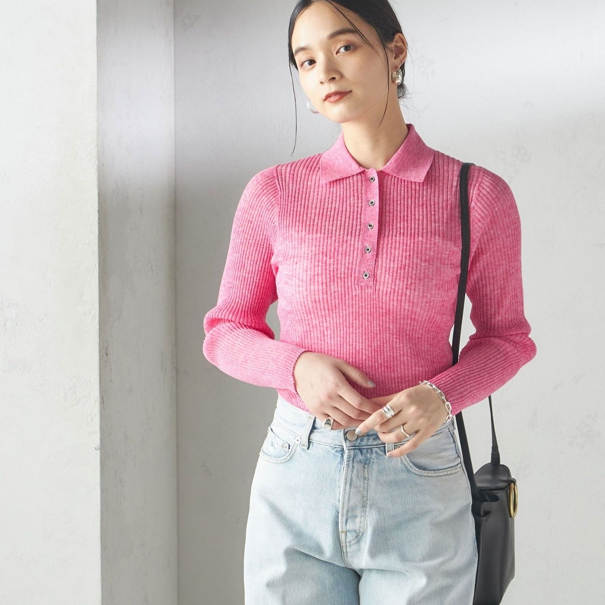 quaranciel:〈手洗い可能〉シアー ラメ ポロ リブ ニット プルオーバー