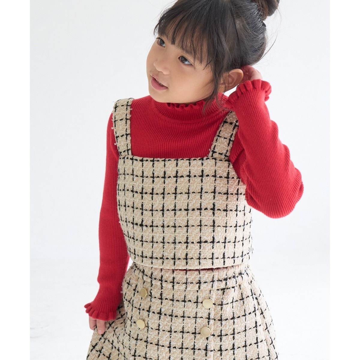 キッズらしい愛らしさを備えたツイードビスチェがお目見え。