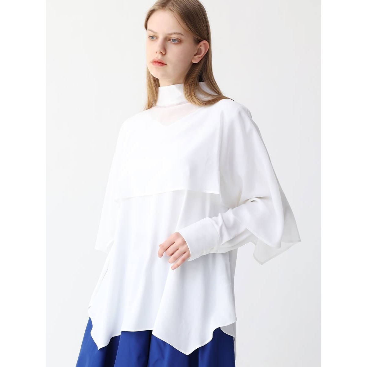 素材 | [ブラウス] ポリエステル:100% [ケープ] 再生繊維(セルロース):84%、ポリエステル:16% 透け感 | ホワイトあり ※インナーのカラー等をお気をつけ下さい 伸縮性 | なし 原産国 | 日本 家庭洗濯 | 可 ポケット | なし