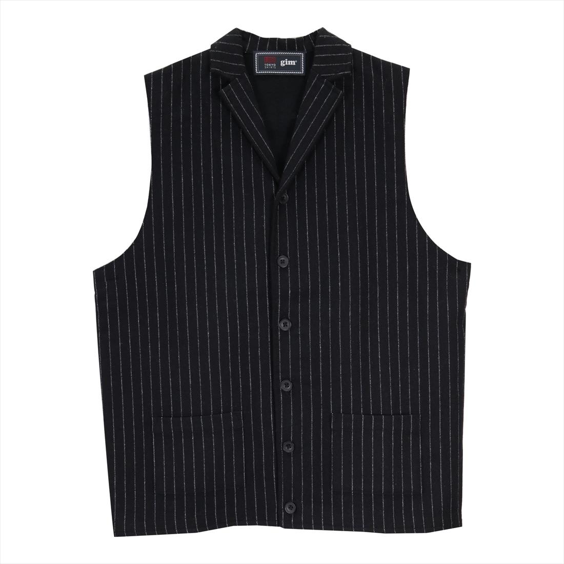 前身頃に型崩れやシワになりづらい布帛を使用した、ストライプ柄のジレ。