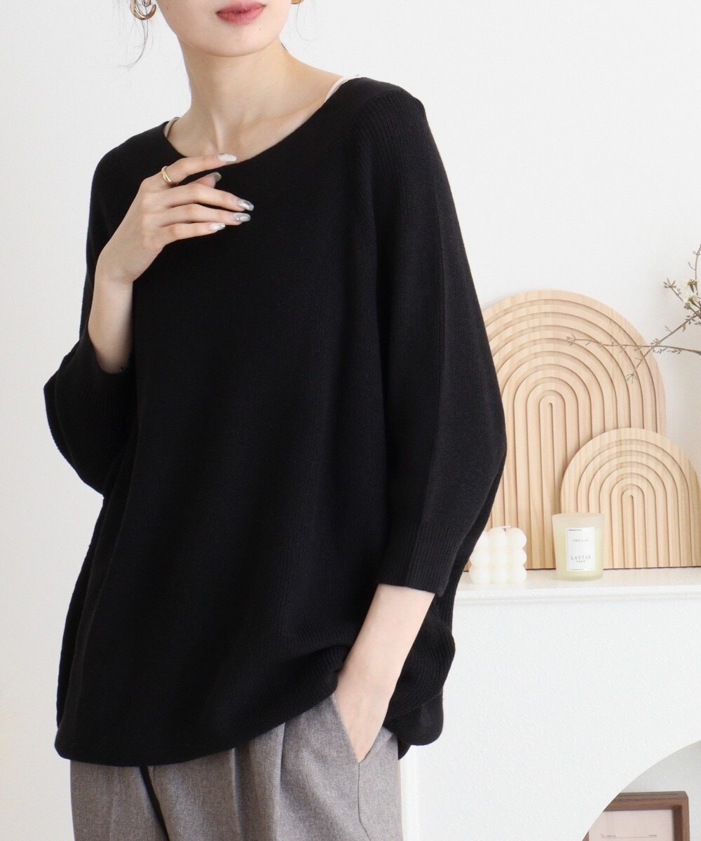 全体的にゆったりした袖感でルーズにも着れる薄手のニット。