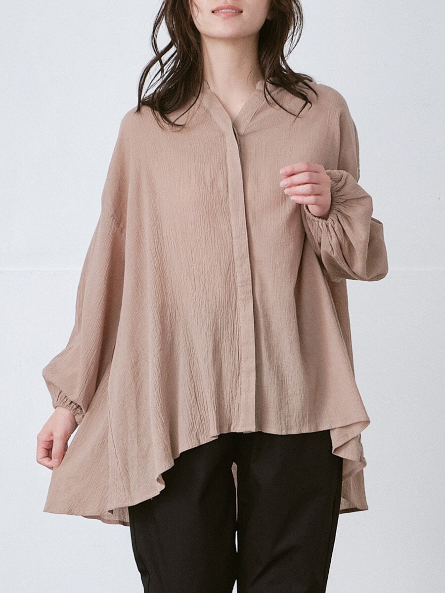 キーネックブラウス 綿ジョーゼット 2色展開 F フリーサイズ