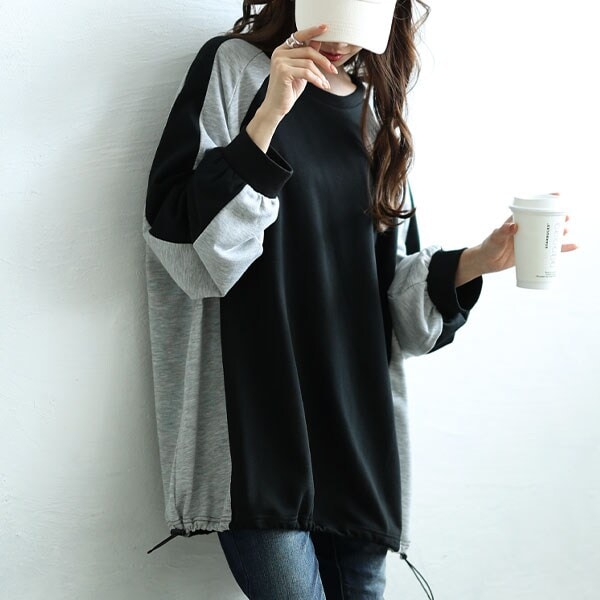 周りと差のつく配色技、ラグランスウェットプルオーバー。袖とサイドを配色で切り替えることで身幅を細く見せる錯覚効果!ゆったりと着られるオーバーシルエットの体型カバー&こなれたルックス。裾ドローコード付きで丈感やシルエットも変化でき、着回しの幅が広がります。カジュアル好きさんにオススメのスウェットです。