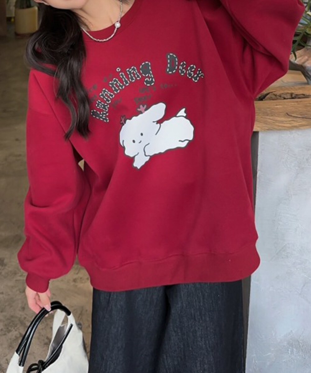 可愛らしいキャラクターロゴデザインがポイントの裏起毛スウェット。
