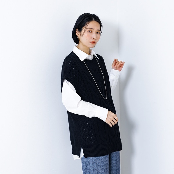 ・アームホールにゆとりがあり、シャツやカットソーとのレイヤードスタイルももたつきにくいです。
