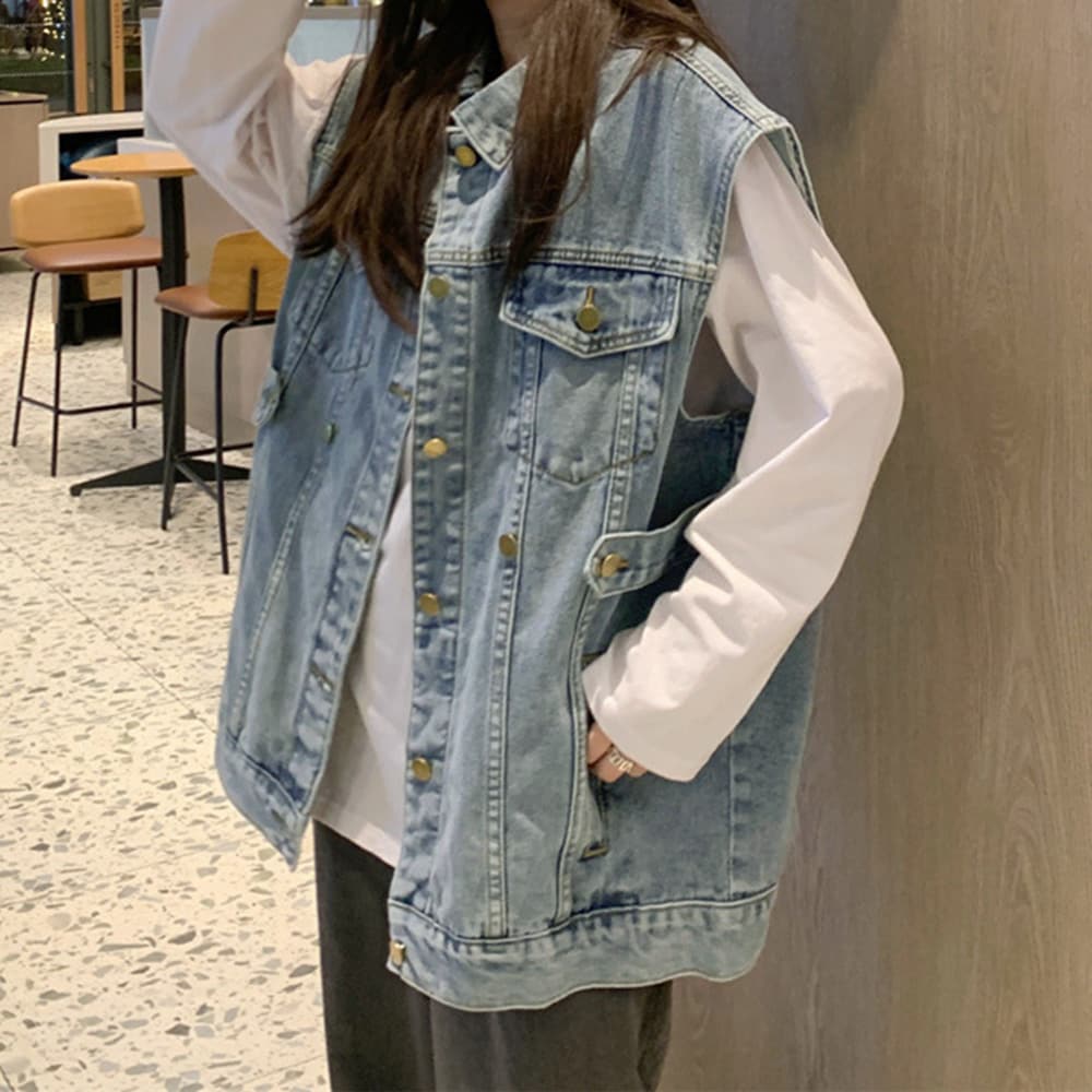 メンズライクなワイドシルエットのデニムベスト