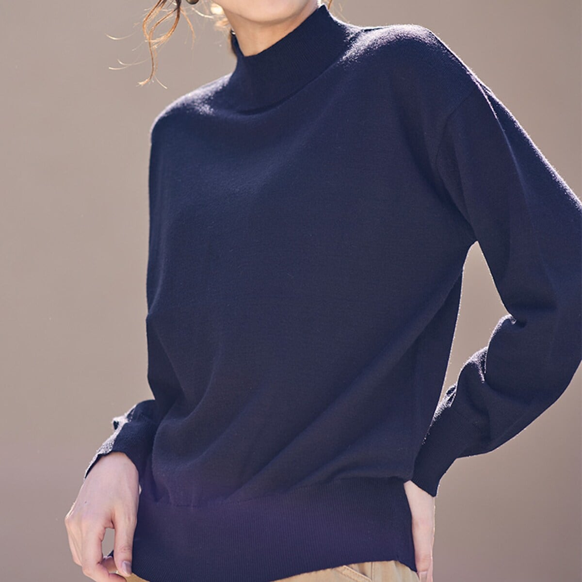 シンプルかつ着やすいハイネック。