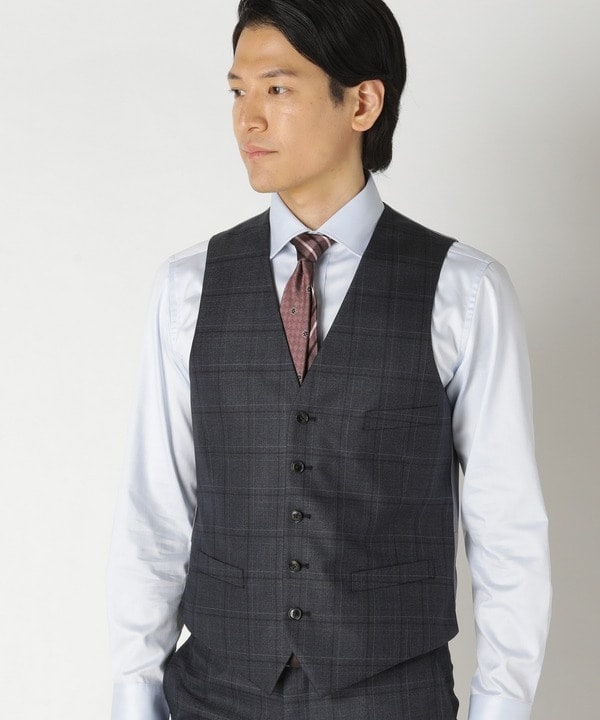品のあるツヤ感で高級感を演出する CROWDED CLOSET定番の杢チェック柄ベスト