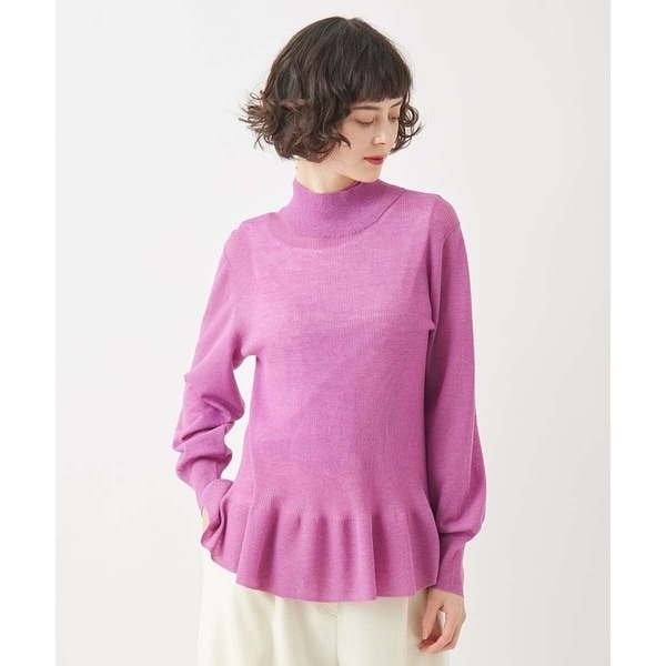 独特のシャリ感とソフトな風合いでシャープにフィットする細リブ仕立て。袖や裾ペプラムをふんわりとさせることで気になる部分をカバーしてメリハリのあるシルエットを演出。ハイネックをダブルに重ねた華やかさもビスならではのおしゃれなポイントです。様々なボトムと相性が良く、ジャケットとも好相性の使い勝手の良いアイテム。