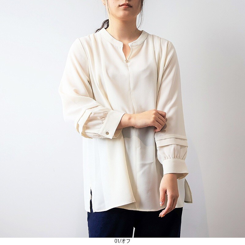 【大きいサイズ】バンドカラーブラウス