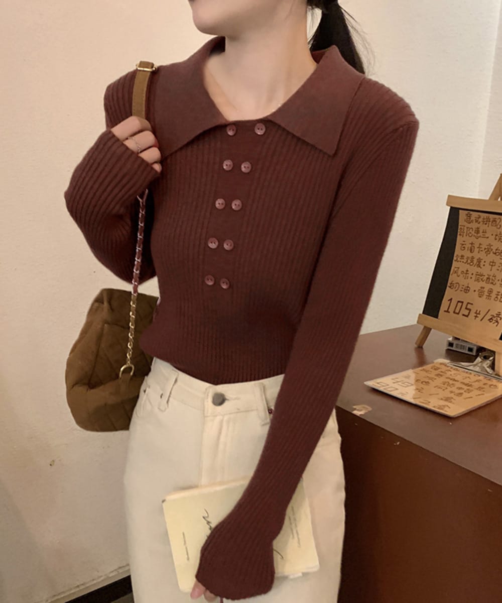 シンプルでエレガントなデザインのポロネックニットトップスです。