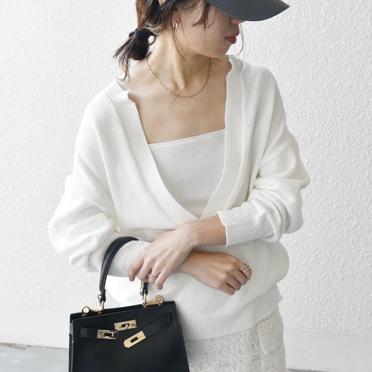 春先はキャミソールやタンクトップと重ねて、透け感を楽しむヘルシーな着こなしが◎
