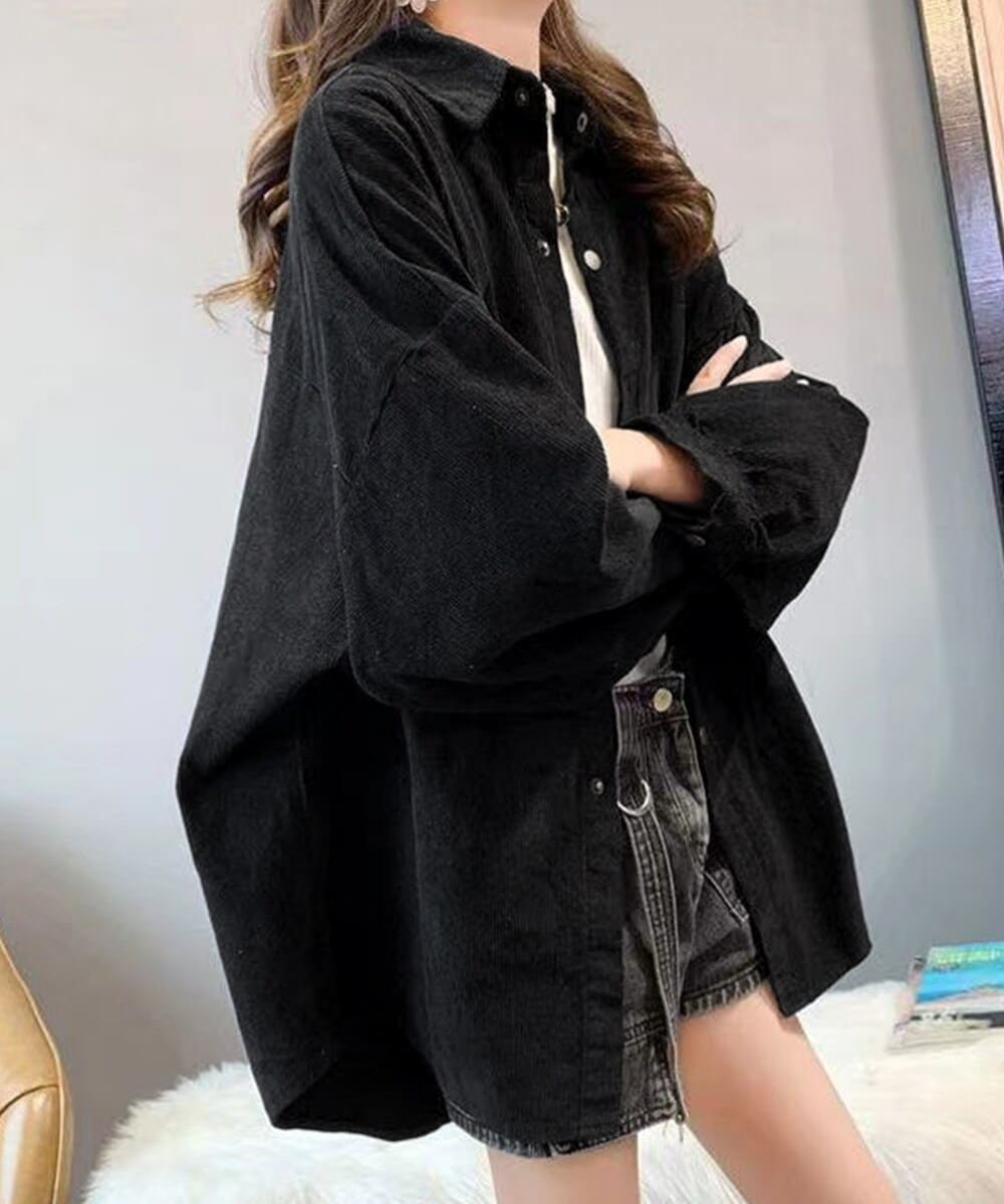 コーディネートに季節感をプラスできるコーデュロイロングシャツです。
