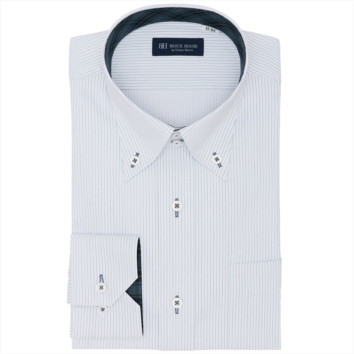 【透け防止】 形態安定 クレリックボタンダウンカラー 長袖 ワイシャツ