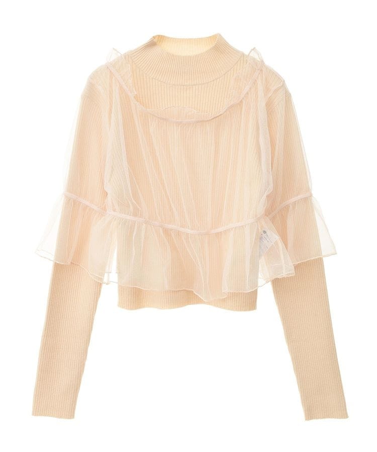 フェミニンルックで印象的に映える旬なセットアイテム。ハイネックリブニットはシンプルなワントーンで仕上げたショート丈デザイン、チュールトップはたっぷりと施した切り替えギャザー入りでエアリーな風合いをプラスします。それぞれ単体でも活躍し、様々なコーディネートに活躍。あえてカジュアルなデニムやハード目のスカートに合わせるのもおすすめです。透け感[ややあり]
