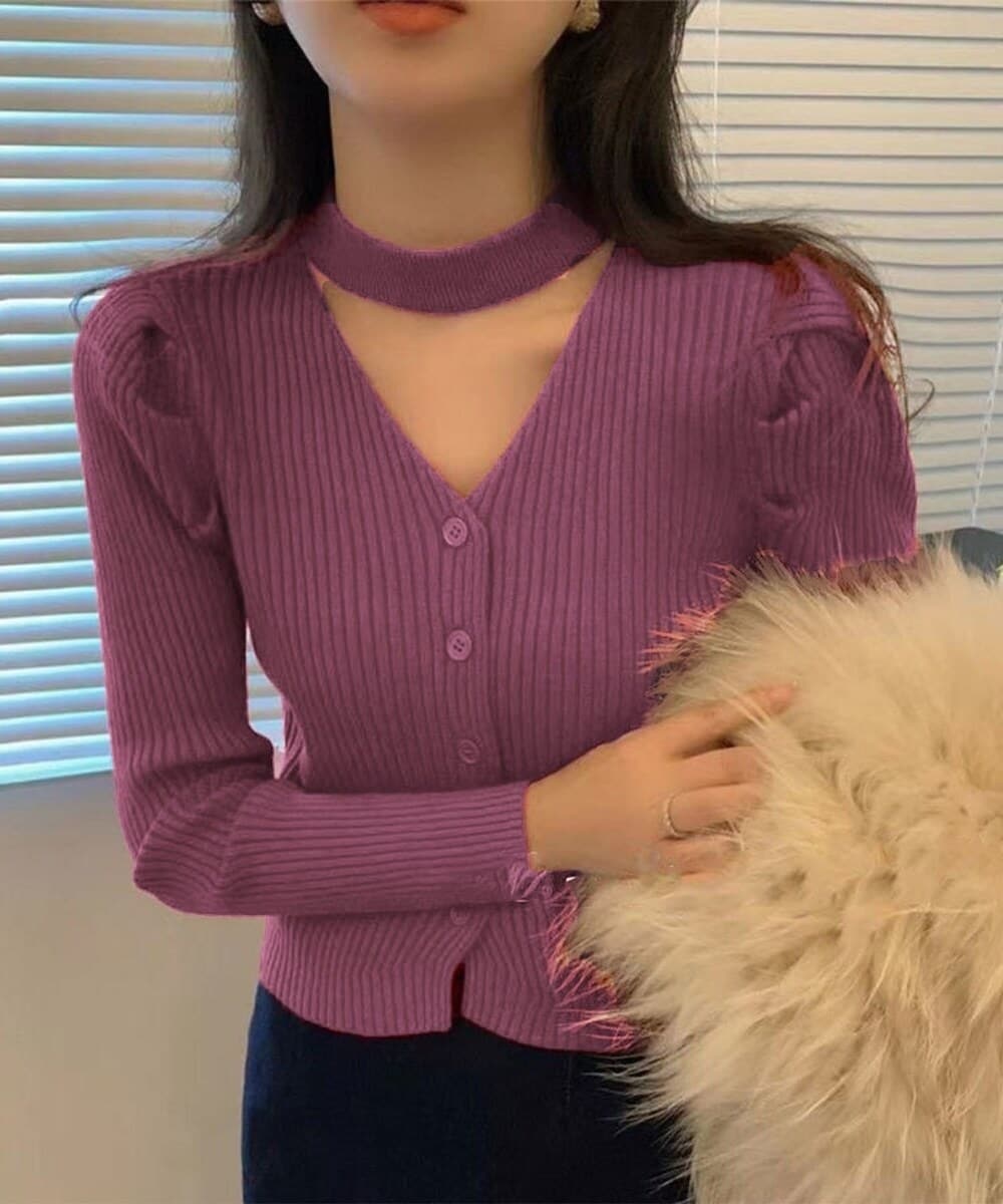 トレンドのカットアウトデザインのリブVネックカーディガン。柔らかい素材とリブ編みが、快適な着心地とフィット感で大人っぽく女性らしいコーデを演出♪豊富なカラーバリエーションで、どんなスタイルにも合わせやすい万能アイテム。前開きのデザインはレイヤードスタイルに最適で、シーズンを問わず活躍します。デイリーにもお出かけにも使える、持っておきたい一枚です。