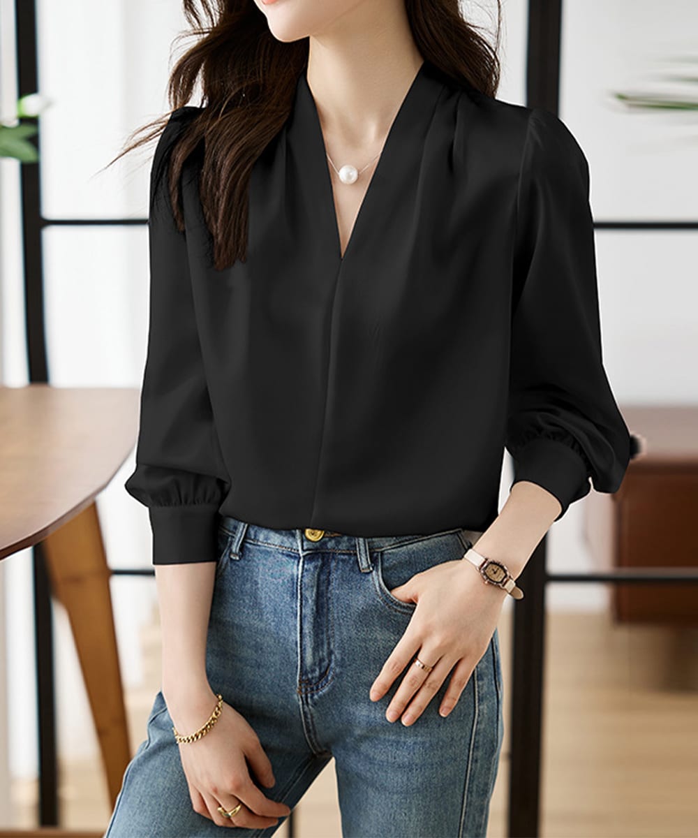 1枚で着るのはもちろん、ジャケットやカーディガンのインナーとしても使える万能なキレイめブラウス