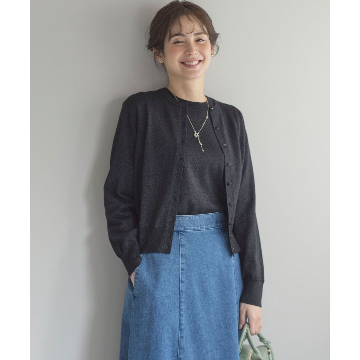 人気のラメ入りアンサンブルに5分袖が登場!繊細なラメの輝きでシンプルコーデが華やぐ