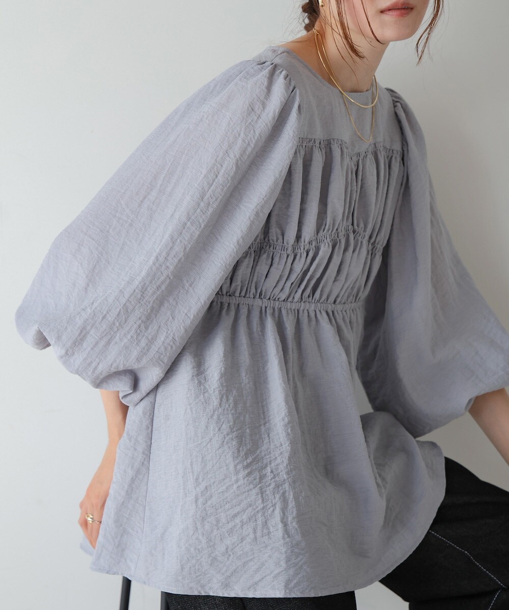 Couture brooch バックリボンデザイン シャーリングブラウス