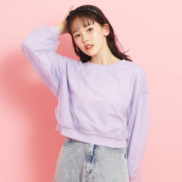 全体に施されたソフトチュールが、華やかさを演出するトレーナー。