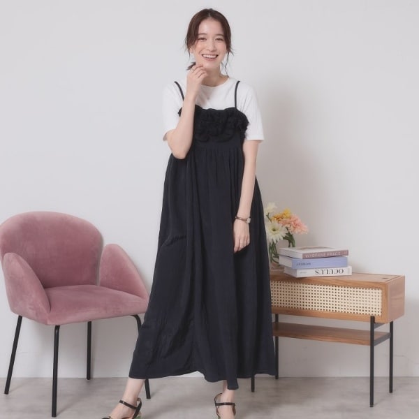ADAM ET ROPE' WEB限定サテンフレアキャミワンピース