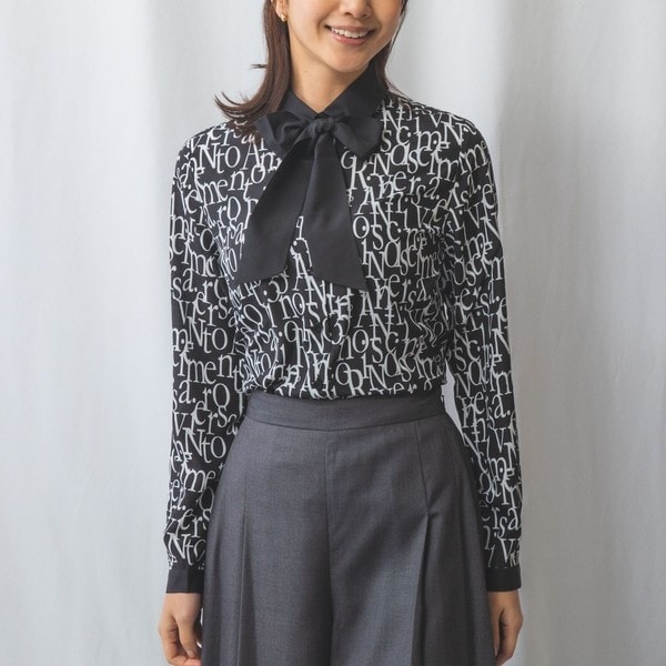 【NARACAMICIE】幾何サテンボウタイ付き長袖ブラウス
