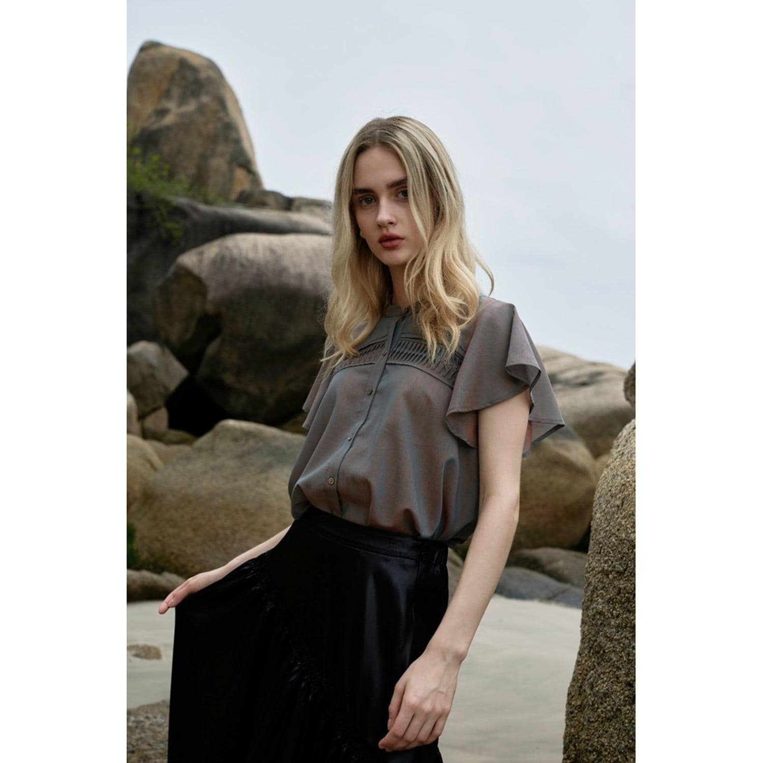 coca コカ⭐︎ ピンタック フレア袖ブラウス ダークベージュ M