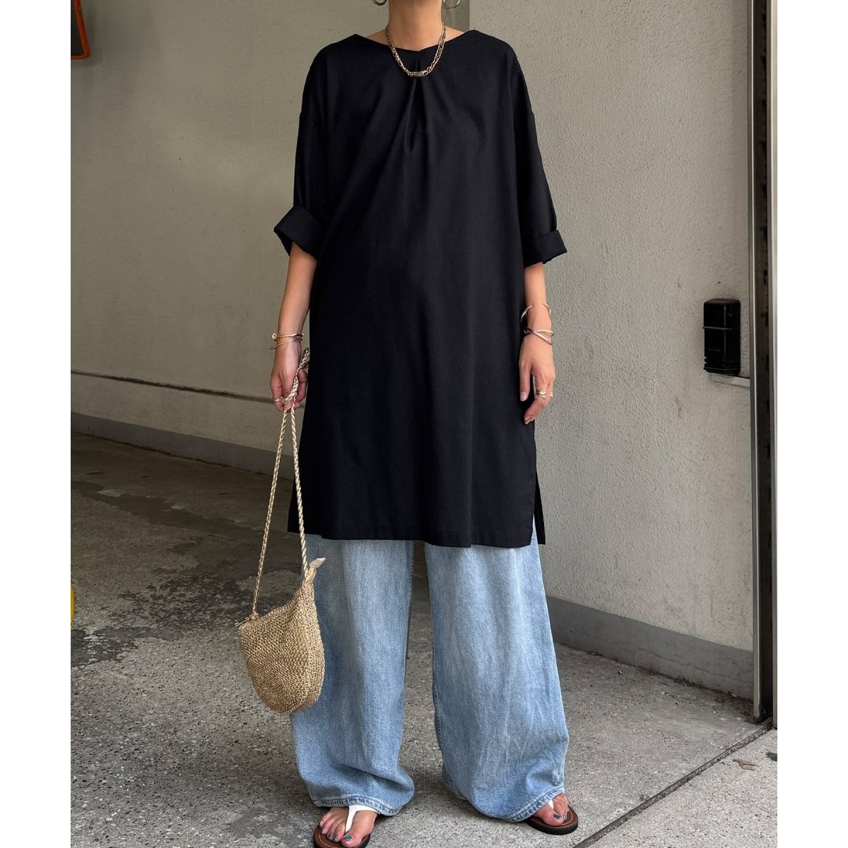 ゆったりサイズで風通しも良く、リネン混のさらりとした肌触りが夏にぴったりのワンピース。