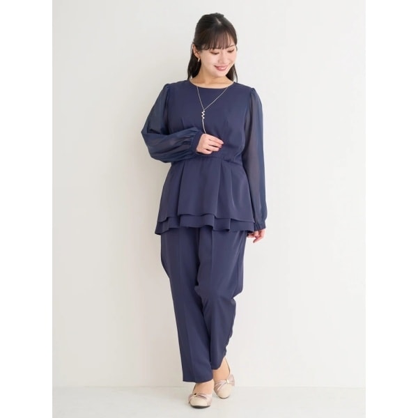 上品で華やかにキマるペプラムトップス×テーパードパンツの2点セット。