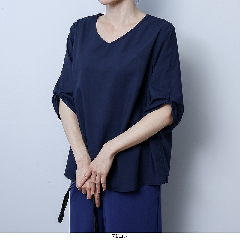 【大きいサイズ】スキッパー タックスリーブ ブラウス