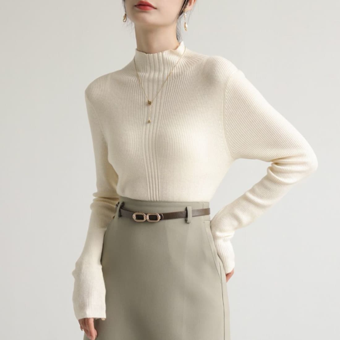 体のラインを拾い過ぎない程よいフィット感のハイネックリブニットが登場♪<br>
