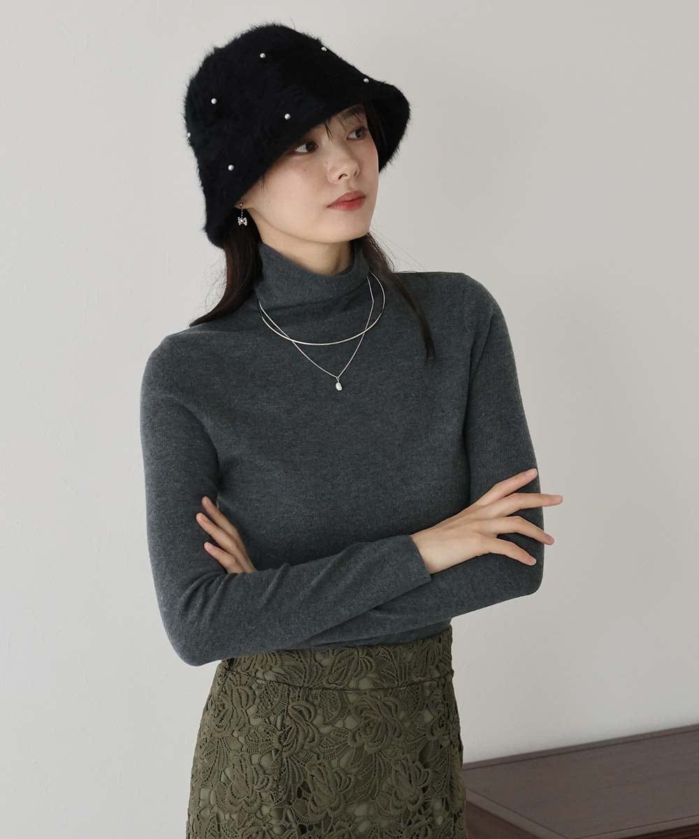 タートルネックデザインで大人&きれいめなムードを演出し、