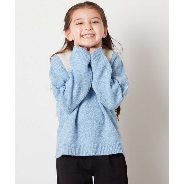 ・襟のバイカラー配色が目を惹く、今っぽいおしゃれニットトップス。