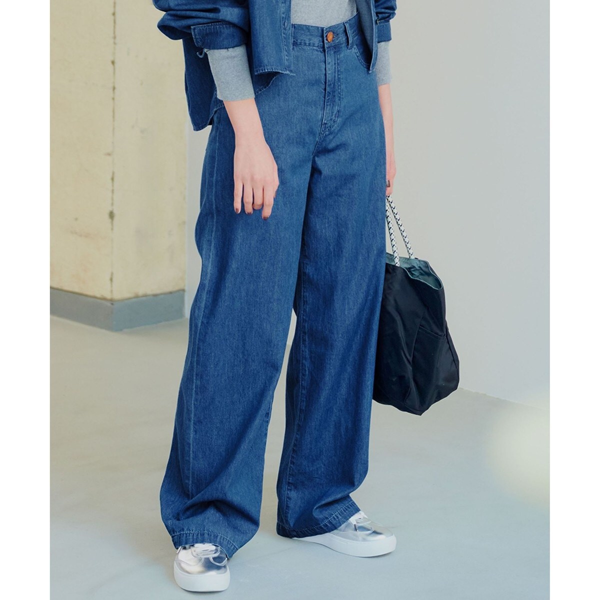 春らしい軽やかな風合いが魅力のダンガリー素材でつくられたワイドパンツ
