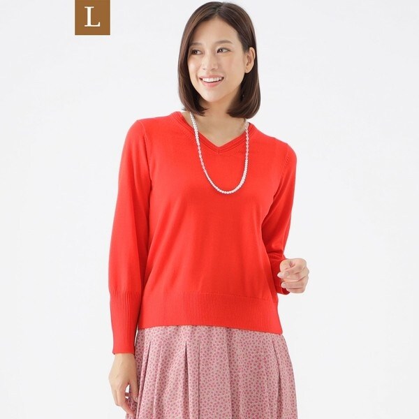 【L】【WEB・一部店舗限定】【ウォッシャブル】スーパーファインウールVネックプルオーバーニット