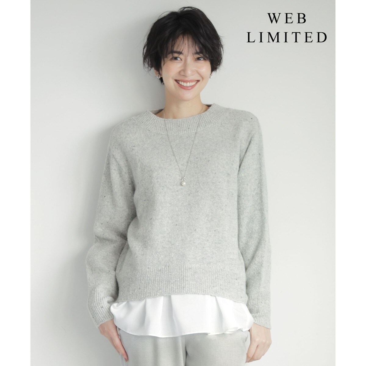 コンパクトな丈感で洒落感を演出する、MIX調の素材感が魅力のクルーネックニット