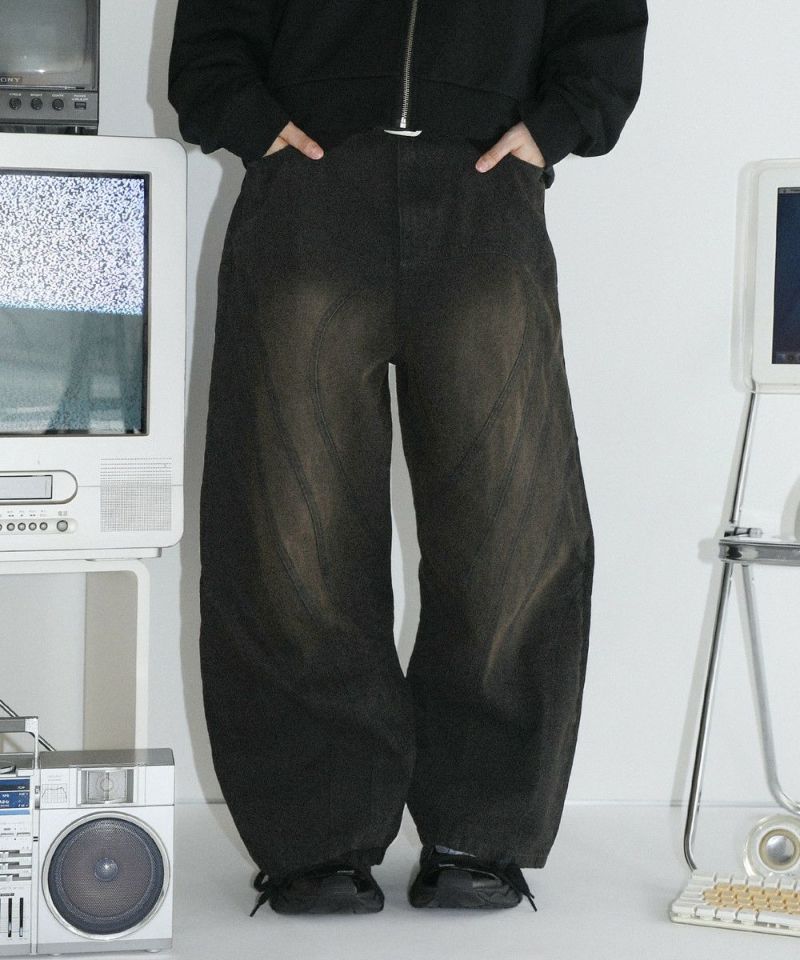 MSG オーバーダイ ウォッシュ加工 ワイドストレートバギーデニムパンツ