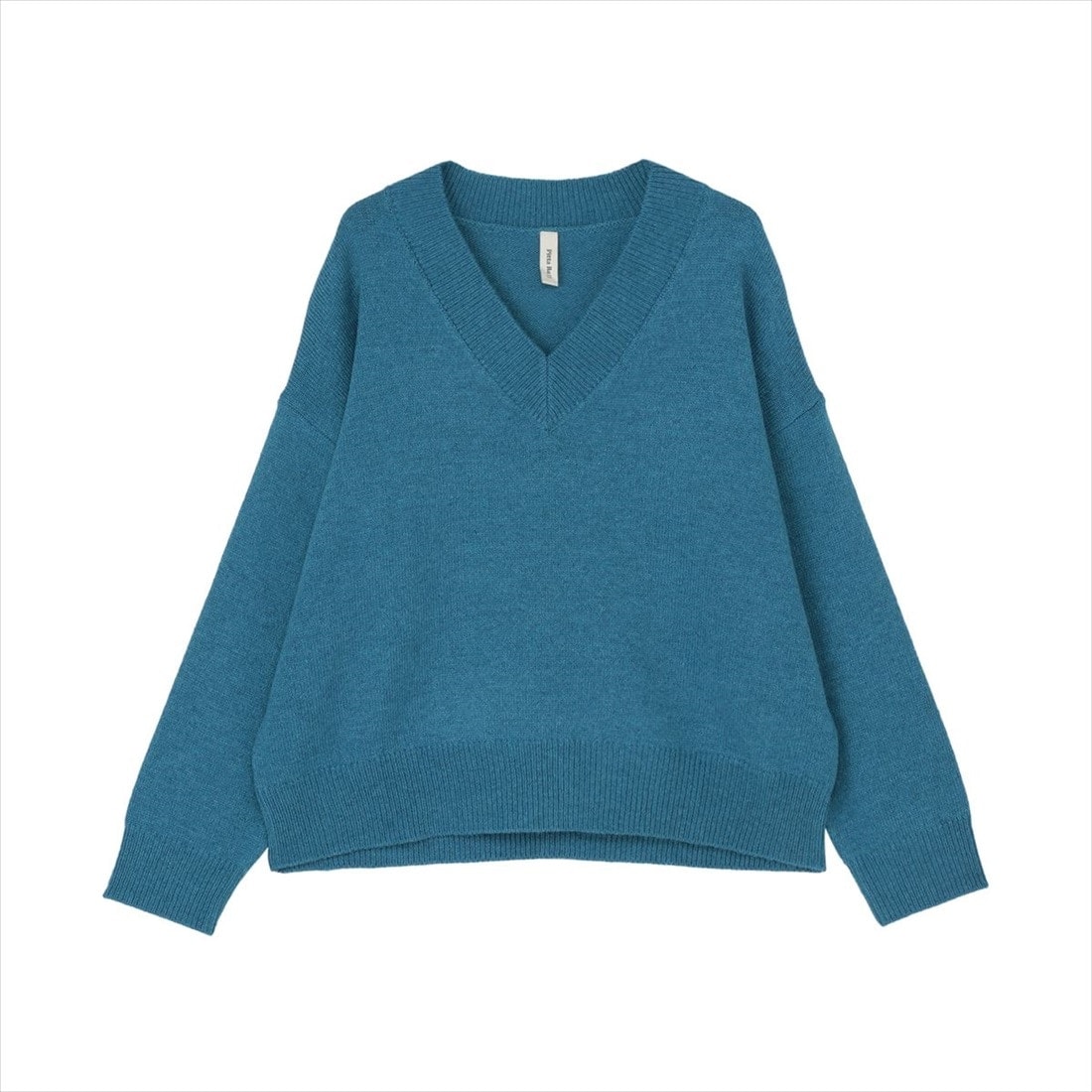 首元がすっきりVネックのプルオーバーは シンプルデザインで着回し力の高い一枚。
