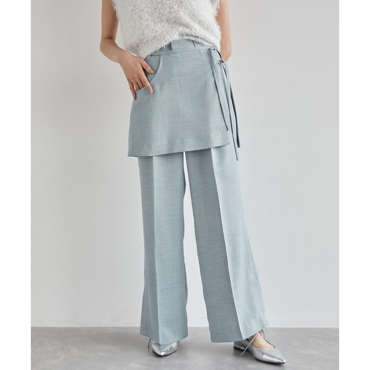デニムタックワイドパンツ