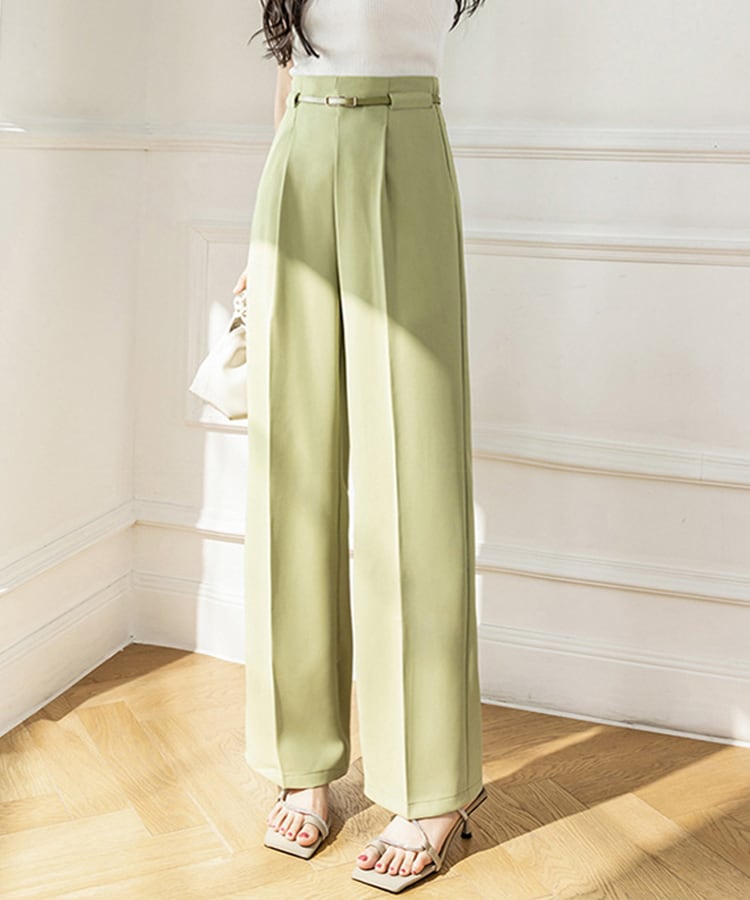 スタイルアップできるハイウエストには、取り外しができるベルトが付いておりトップスインスタイルもしっかりサマ見え。オンオフ問わず着回しを楽しめる一着です。